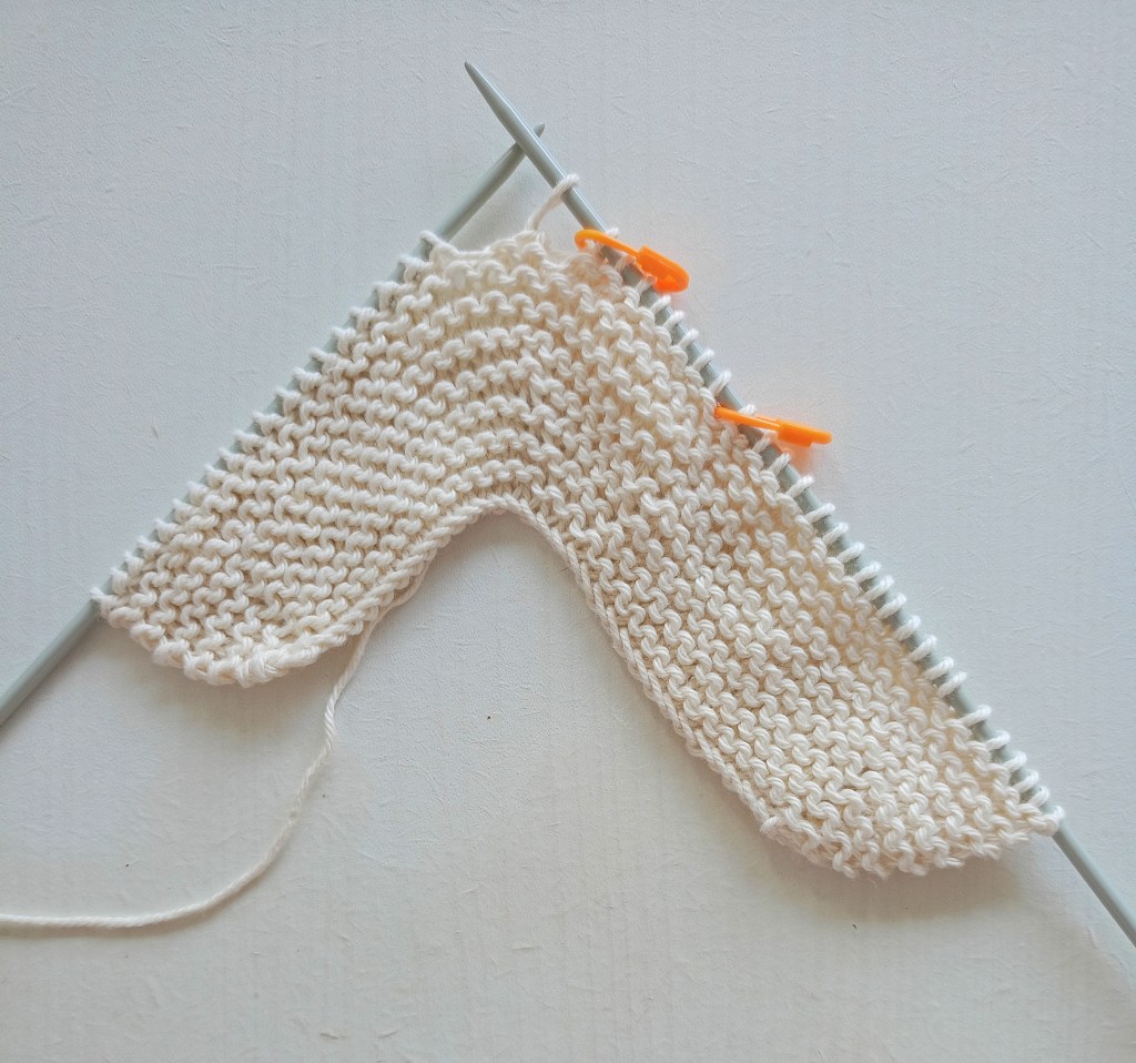 En la aguja izquierda hay 19 puntos que no vamos a tejer ,vamos a girar la labor para que quede así: