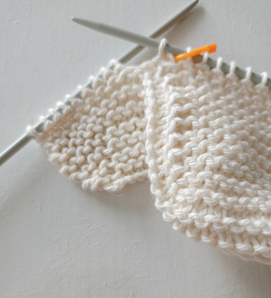 4 vueltas ( pasadas de derecho y pasadas del revés ) de punto bobo.